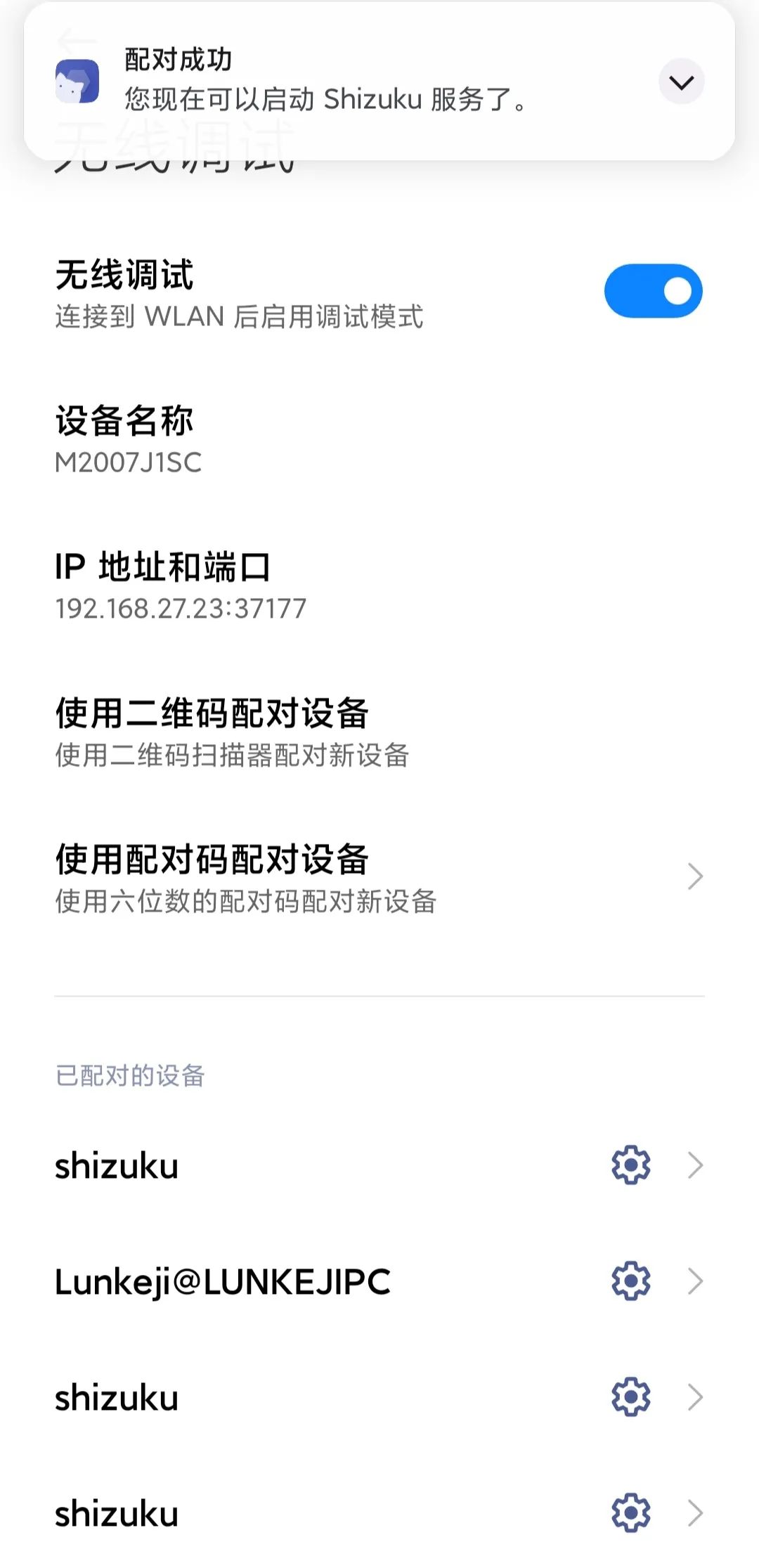Shizuku通知栏不见了可以下拉显示出来,配对失败可以重新发起配对,只要配对成功后不需要再配对。最后回到Shizuku主界面,点击“启动”启动服务,如果一直启动不成功,可以关闭无线调试开关再打开,然后再点启动服务。