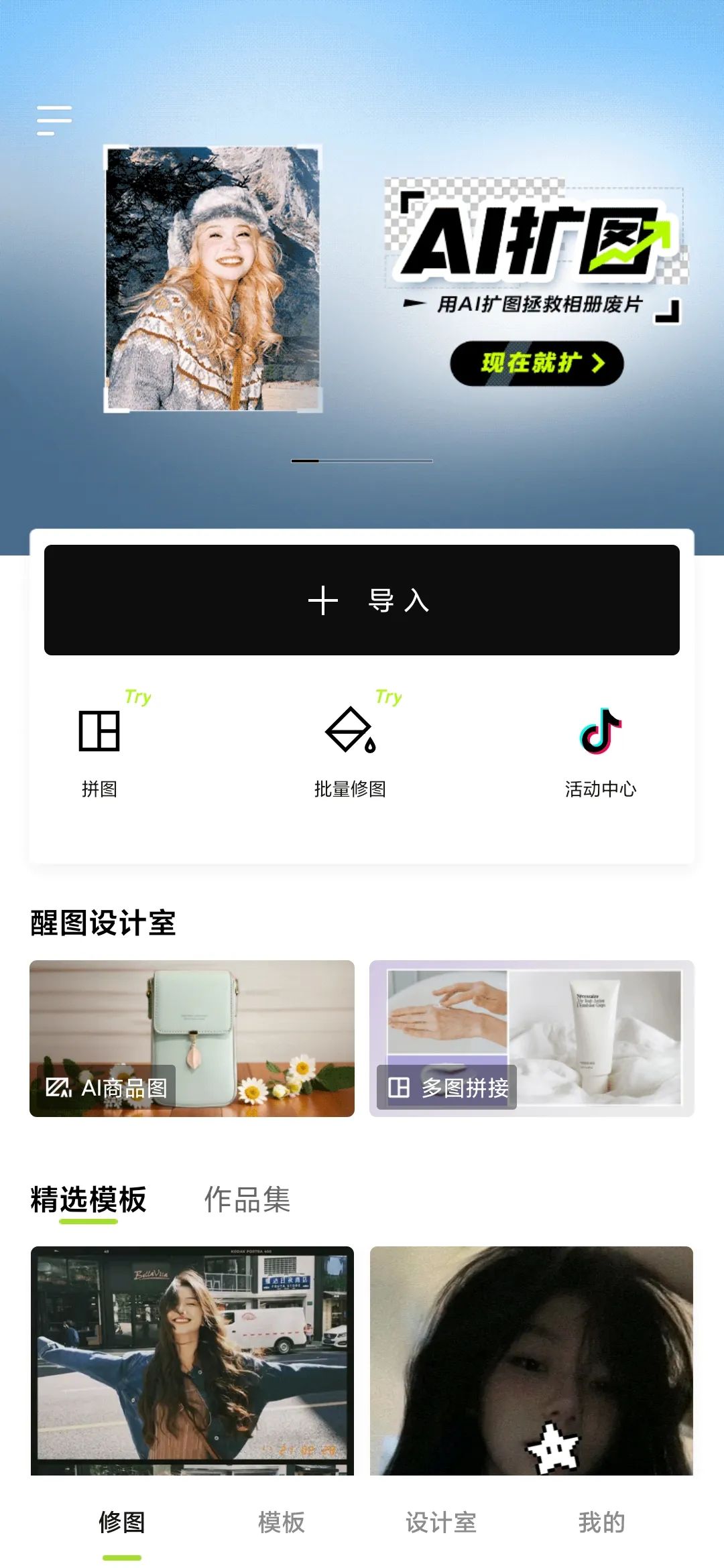 把透明模板导入醒图:打开醒图,点击“+导入”选择透明模板