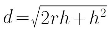 根据地球近似球形来看,计算一下高度h跟观测地平线距离d的关系。地球半径为r。